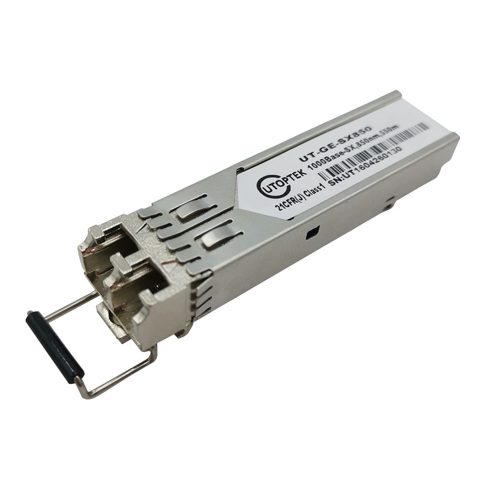 de UTOPTEK155 Mbps El transceptor es un módulo rentable y de alto rendimiento que tiene una interfaz óptica LC dúplex. CML estándar acoplado a CA para señales de alta velocidad y señales de control y monitorización LVTTL. La sección del receptor utiliza un receptor PIN y el transmisor utiliza un láser VCSEL de 850 nm, un presupuesto de enlace de hasta 14 dB asegura esta aplicación SONET OC-3/SDH STM-1 de 2 km.
