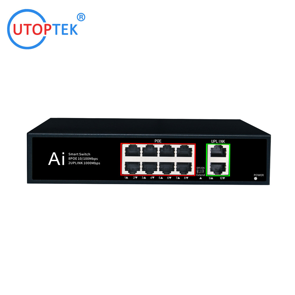Puerto POE de 8*10/100Mbps, 2*10/100/1000Mbps puerto UP-Link |