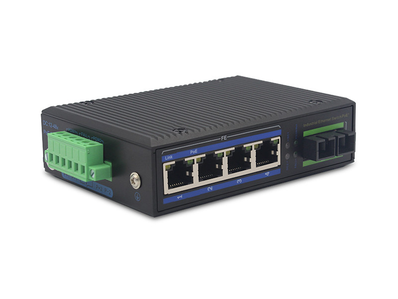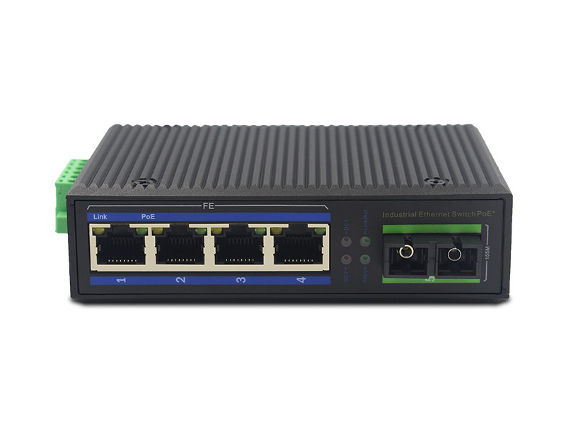 UT14FP-SC20 | 1 puerto de fibra industrial 10/100M + 4 puertos RJ45, SC, fibra dual SM 20km, tipo riel DIN, CC48~57V, con función POE, excluye adaptador de corriente |