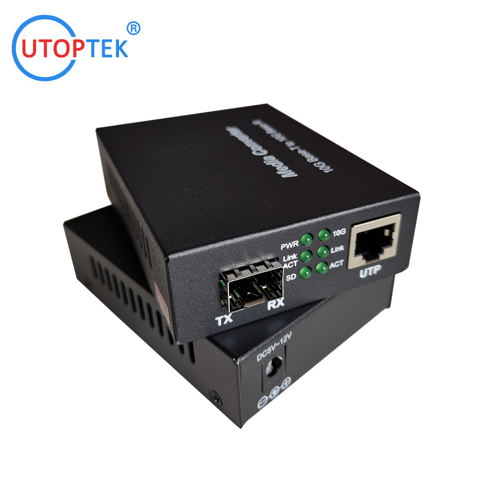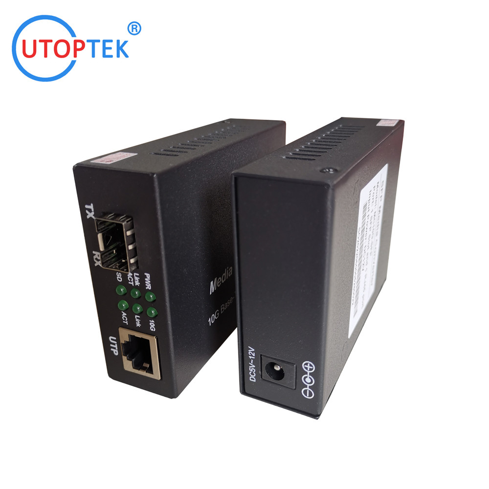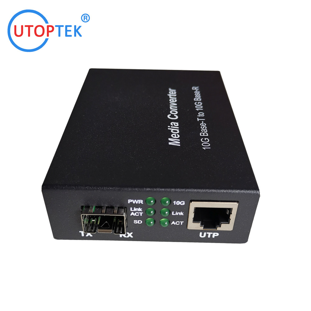 El UT-MC10G-SFP es un convertidor de medios de 10G Base-T a 10G Base-R que admite dos tipos de medios para la conexión de red, como 10GBase-T y 10GBase-FX. El convertidor de medios puente está diseñado con un chip PHY Ethernet 10Gbase que conecta dos tipos de segmentos que operan sin problemas. Este convertidor se puede utilizar como una unidad independiente o como un módulo deslizable en el chasis del rack de convertidor de 19’’ para su uso en un armario de cableado central.
