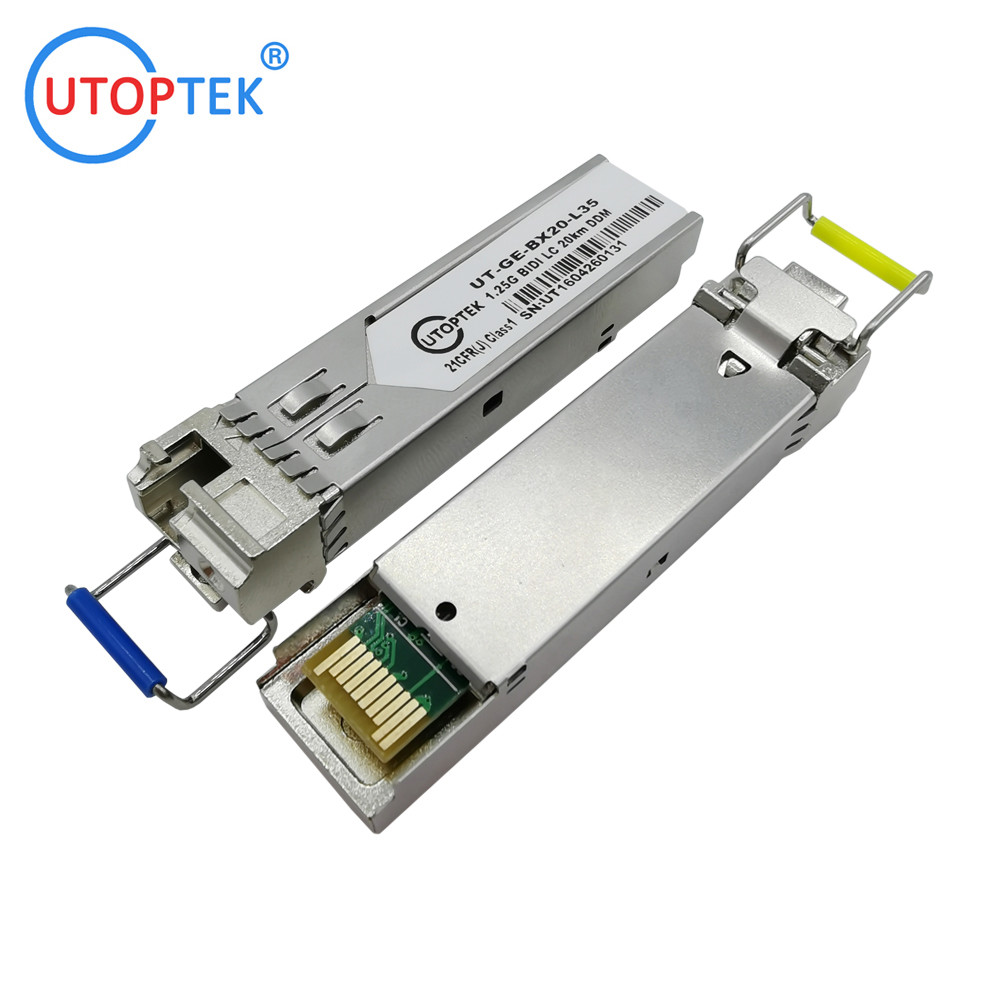 Los transceptores UT-GE-BX20-L35 de UTOPTEK son un módulo de alto rendimiento y rentable que tiene una única interfaz óptica LC.Son compatibles con el Small Form Factor Pluggable Multi-Sourcing Agreement (MSA) y las funciones de diagnóstico digital están disponibles a través del bus serial de 2 cables especificado en SFF-8472.. La sección receptor utiliza un receptor PIN y el transmisor utiliza un láser FP de 1310 nm, hasta 14 dB de conexión para garantizar este módulo 1000Base-LX Ethernet 20km aplicación.