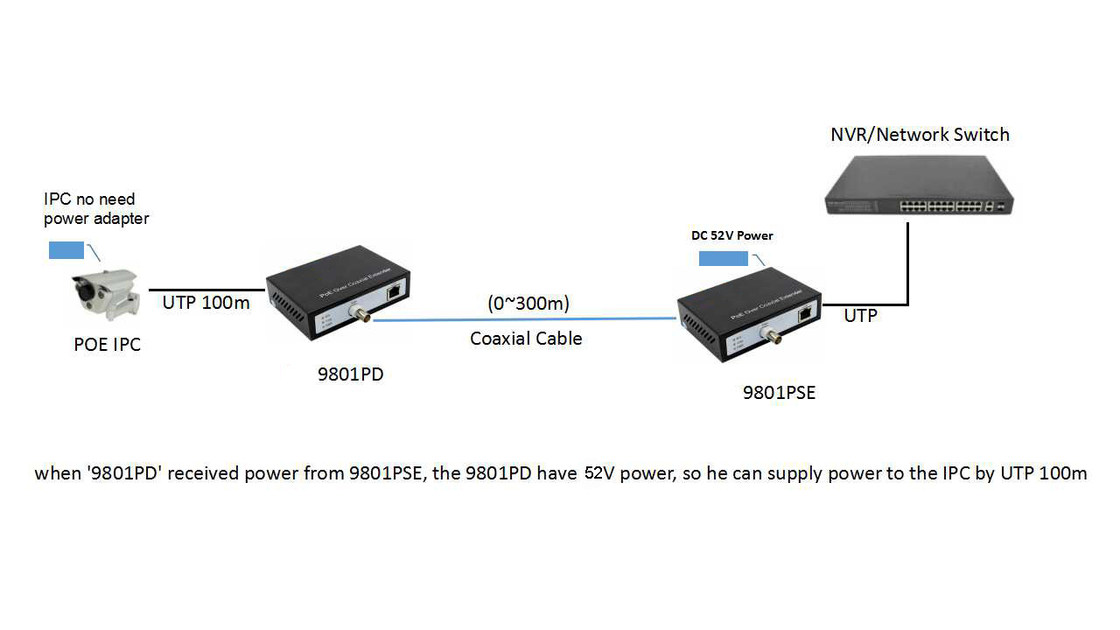 Este El Extensor Ethernet sobre Coaxial permite a las cámaras IP transmitir a través de cableado coaxial. Permite que el sistema extienda las cámaras IP más allá de las limitaciones de distancia del cable y también actúa como un inyector PoE. El sistema transmite cámaras IP a través de coaxial y puede convertir rápidamente cualquier cable coaxial RG59U ordinario en una comunicación de red de alta velocidad y una ruta PoE. Cuando opera sobre cable coaxial RG59U, el extensor de cámara IP puede operar a distancias de hasta 300 metros. El sistema de extensor Ethernet sobre Coaxial consta de un transmisor y un receptor que requieren muy poco tiempo de instalación y absolutamente ninguna configuración.