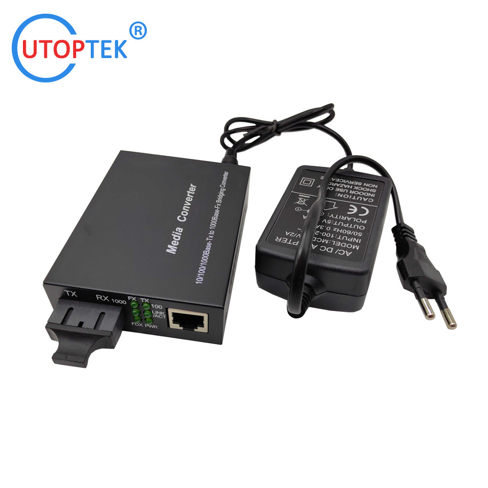 UT-MC1G-2SC: el número de unidad. | 10/100/1000M convertidor de medios SM a MM, SM dúplex SC 1310nmkm a MM dúplex SC 850nm 550m, fuente de alimentación DC5V externa |