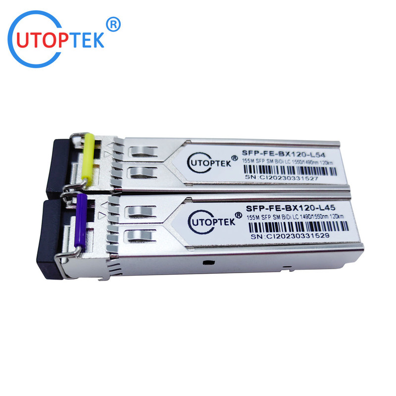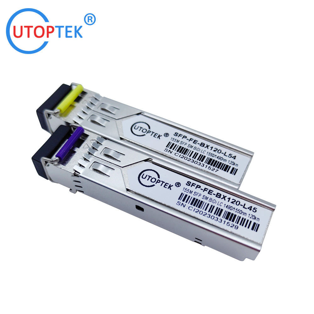 SFP-FE-BX120-L45 | 155Mbps | BiDi SFP | 120km | Tx1490nm/Rx1550nm | DFB | PIN | LC | 0-70℃ |