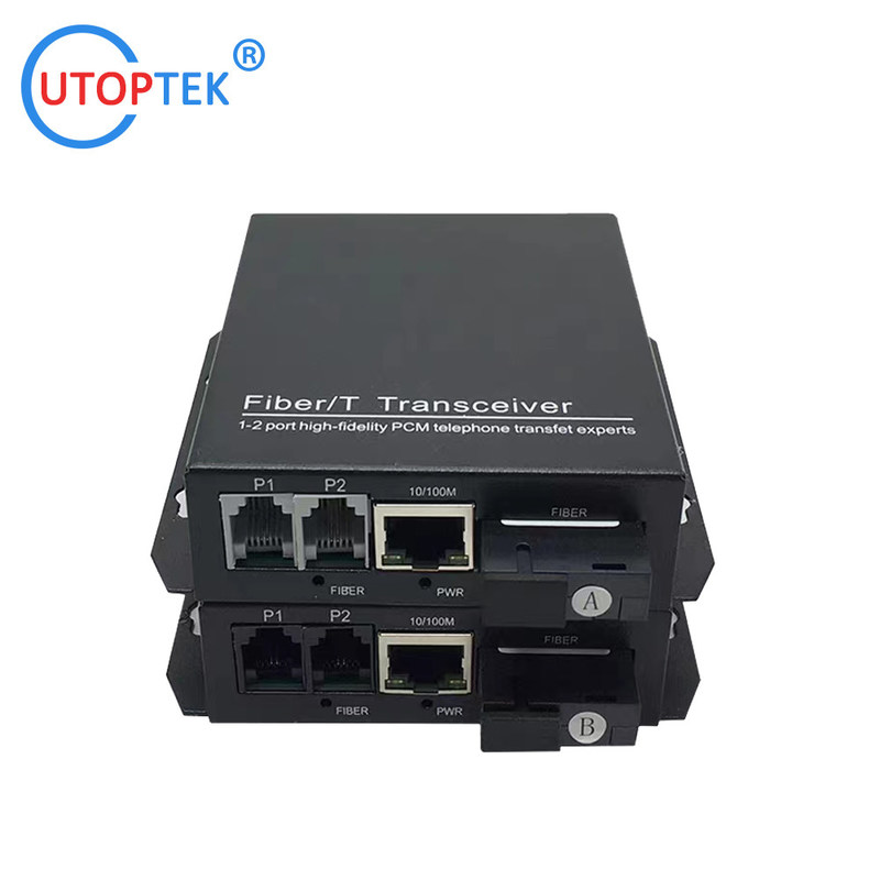 UT-2P2E-T/R | Teléfonos de 2 canales + 2*10/100M Ethernet, SM Bidi SC 15 km | par |