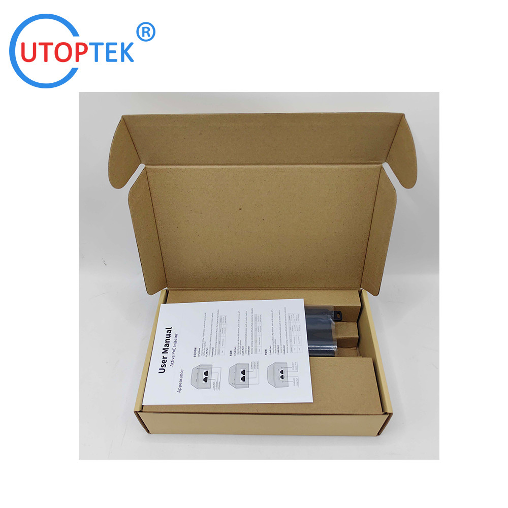 Los inyectores POE de UTOPTEK están envasados en cajas de espuma para su protección durante el envío.Luego, la caja se coloca dentro de una caja de envío más grande con materiales de embalaje adecuados para evitar daños durante el envío y la manipulación. Todas las cajas de envío están etiquetadas con el nombre del producto, número de modelo, y se puede personalizar el logotipo del cliente también.