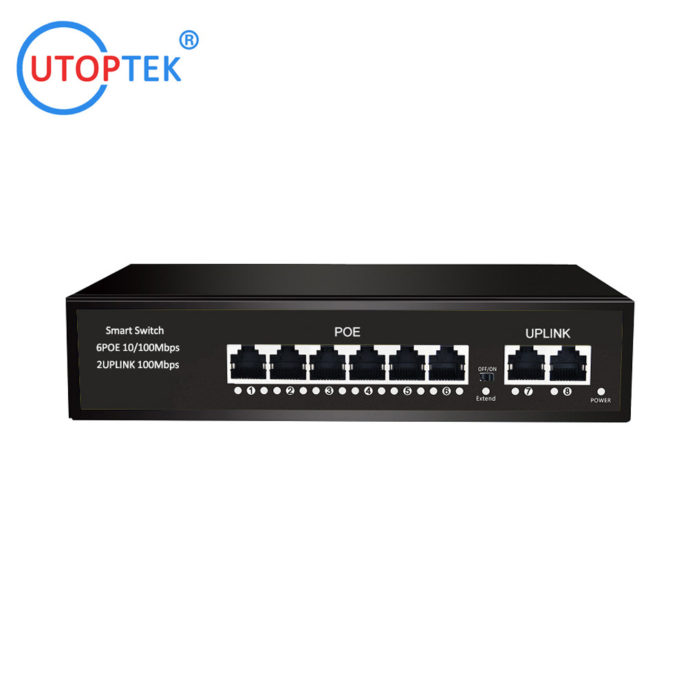 1) puerto POE de 6*10/100Mbps, puerto UP-Link de 2*10/100Mbps